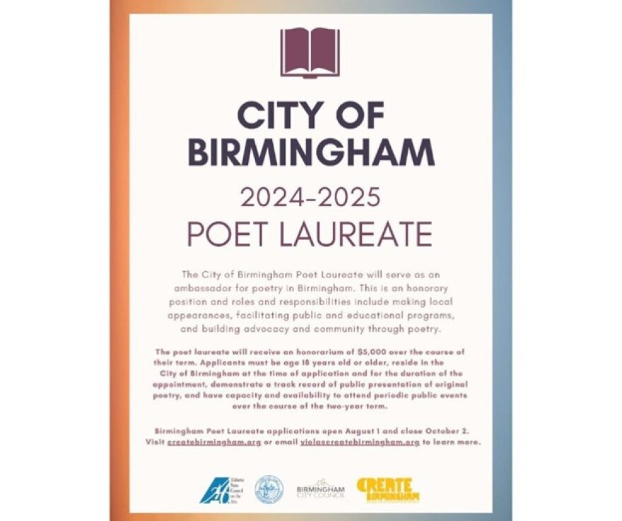 Submission deadline is October 2 for inaugural Birmingham Poet